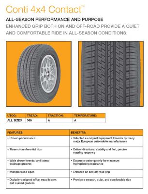 Описание, цены, характеристики автошины CONTINENTAL Conti4X4Contact. Список размеров CONTINENTAL Conti4X4Contact. Вы также можете купить автошины CONTINENTAL Conti4X4Contact в Гурзуфе с доставкой по Крыму. Цены на CONTINENTAL Conti4X4Contact указаны за одну единицу товара. Просим обратить ваше внимание на то, что купить шины CONTINENTAL Conti4X4Contact можно как за наличный, так и безналичный расчет с бесплатной доставкой по г. Гурзуфу*.